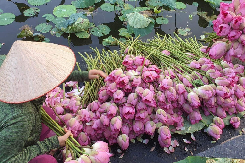 Les fleurs de sau (dracontomelon) recouvrent les trottoirs de leurs pétales blancs, retenant les passants sous leurs averses minuscules. On ne peut les oublier : un soupçon âcre mêlé à l’acidité du fruit et à la douceur légère du nectar attirant abeilles et papillons. En passant à vélo sous les feuillages des rues Trần Phú, Hoàng Diệu, Hai Bà Trưng, le cœur s’apaise. Et lorsque les fleurs tombent, les jeunes fruits apparaissent… Hanoï entre alors doucement dans une nouvelle transition…